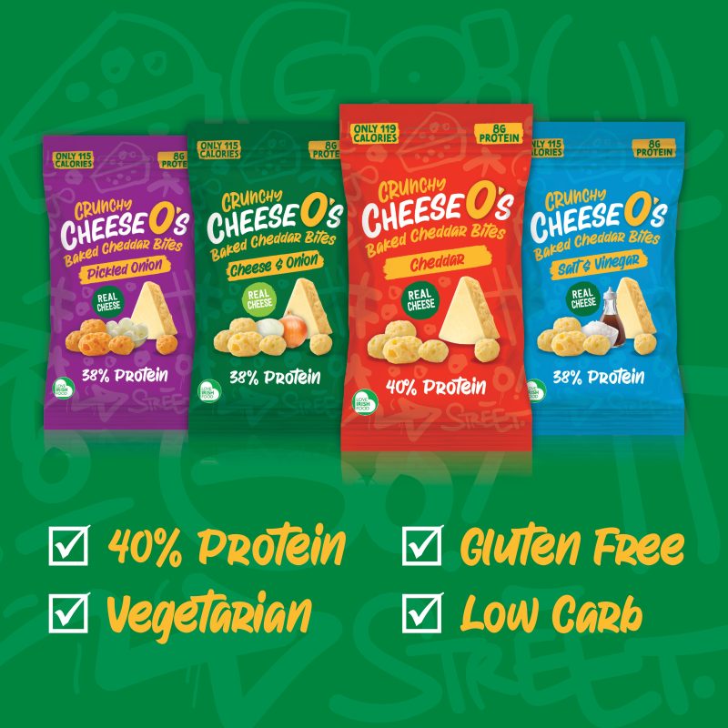 Crunchy Cheese. Available in branded or own label with flavours such as Cheddar, Chilli Cheddar, Black Pepper Cheddar, Cheese & Onion, Salt & Vinegar, Pickled Onion.